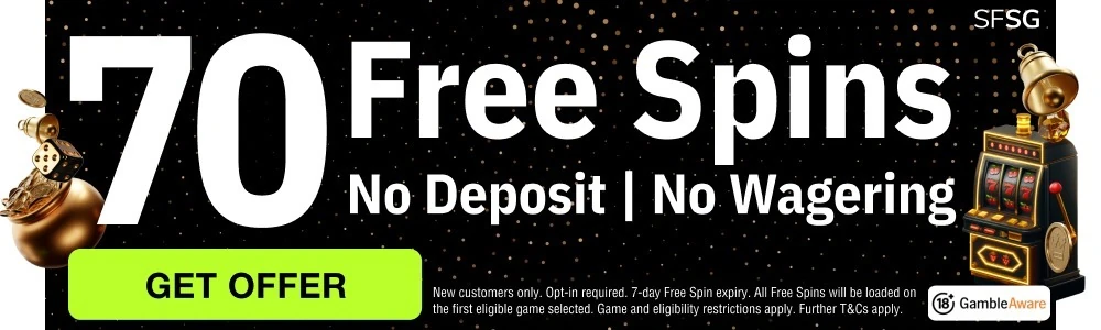 Exclusive offer up for the taking at SuperFreeSlotGames. 70 Free Spins with absolutely NO Deposit & NO Wagering Requirements. Simply sign up on their site and claim your offer.
