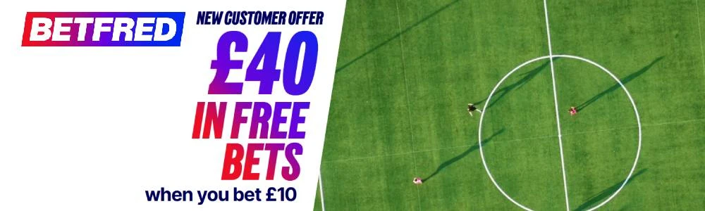 New customers only. 00:00 06/03/26 – 23:59 13/03/26. Register with FRED40, deposit with Debit Card, and place your first bet of £10+ at Evens (2.0)+ on Sports within 7 days to receive £20 in Sports Free Bets and £20 in Acca Free Bets within 24 hours of settlement. 7-day expiry. Eligibility, payment exclusions & T&Cs Apply.